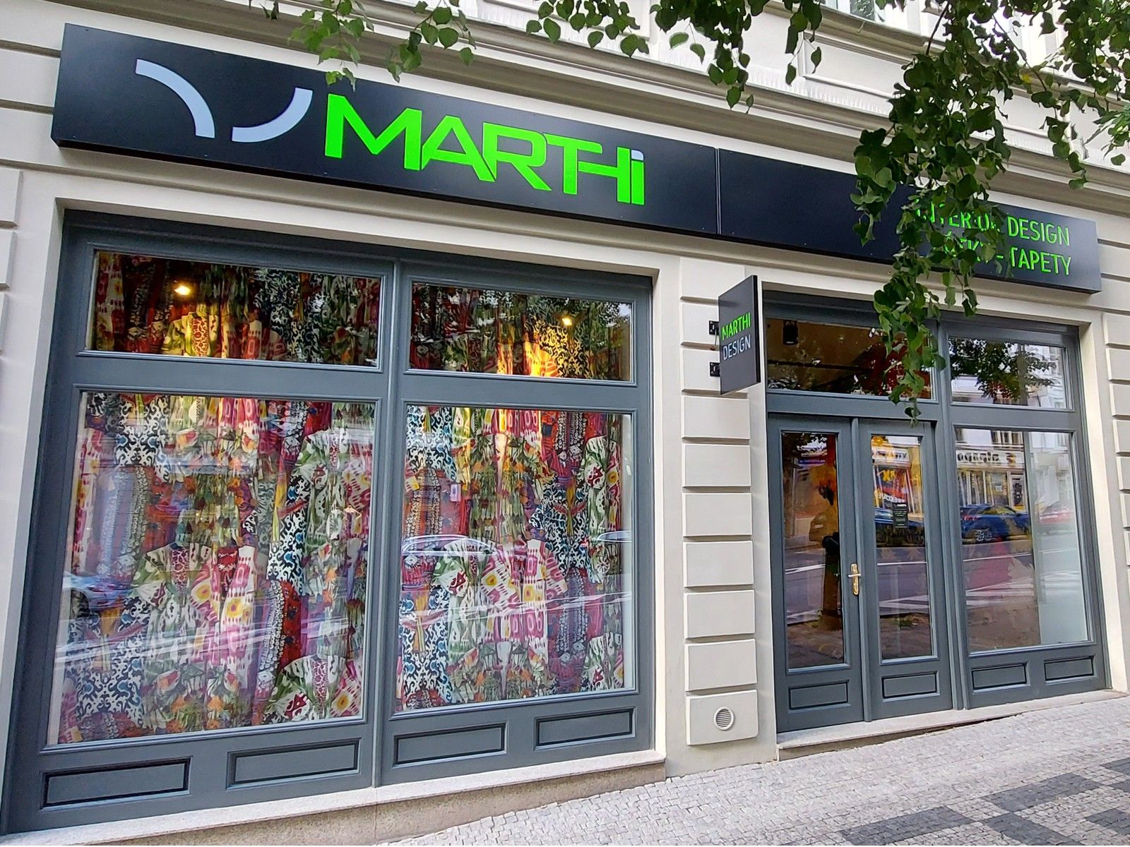 V pražských Vinohradech jsme na ploše více než 200 m² vybudovali unikátní expozici látek, tapet, koberců, textilních dekorací a stínící techniky.