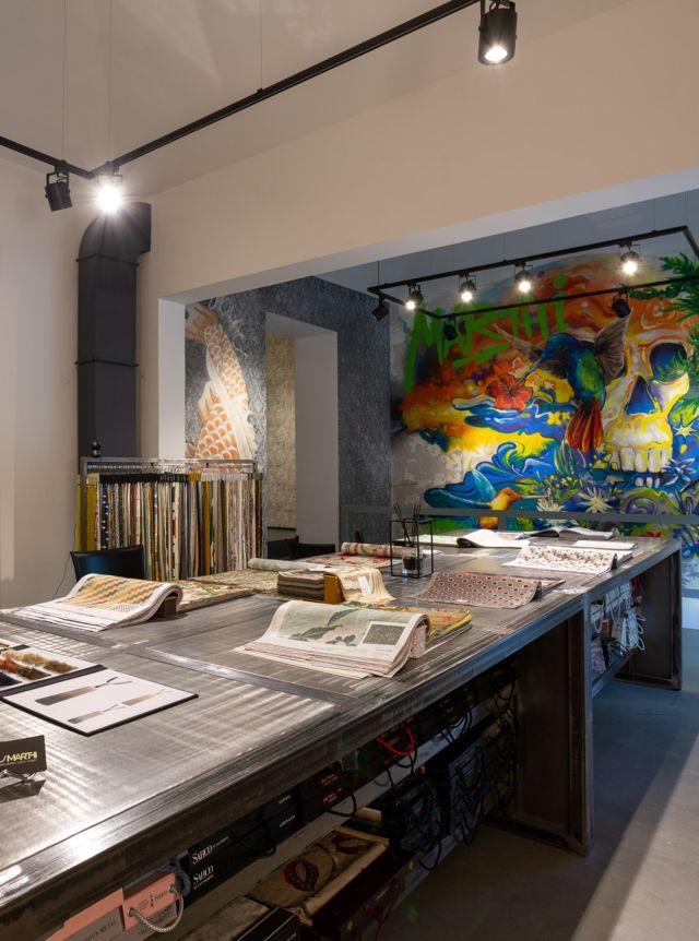 V našem portfoliu najdete obrovské množství textilních a potahových materiálů i dekorativních tapet všech cenových kategorií a to od vyhlášených světových designérů a značek, říká Marthi, ale např. švýcarská firma Jacob Schlaepfer vyniká nad všemi v unikátním propojení fashion a architektury.